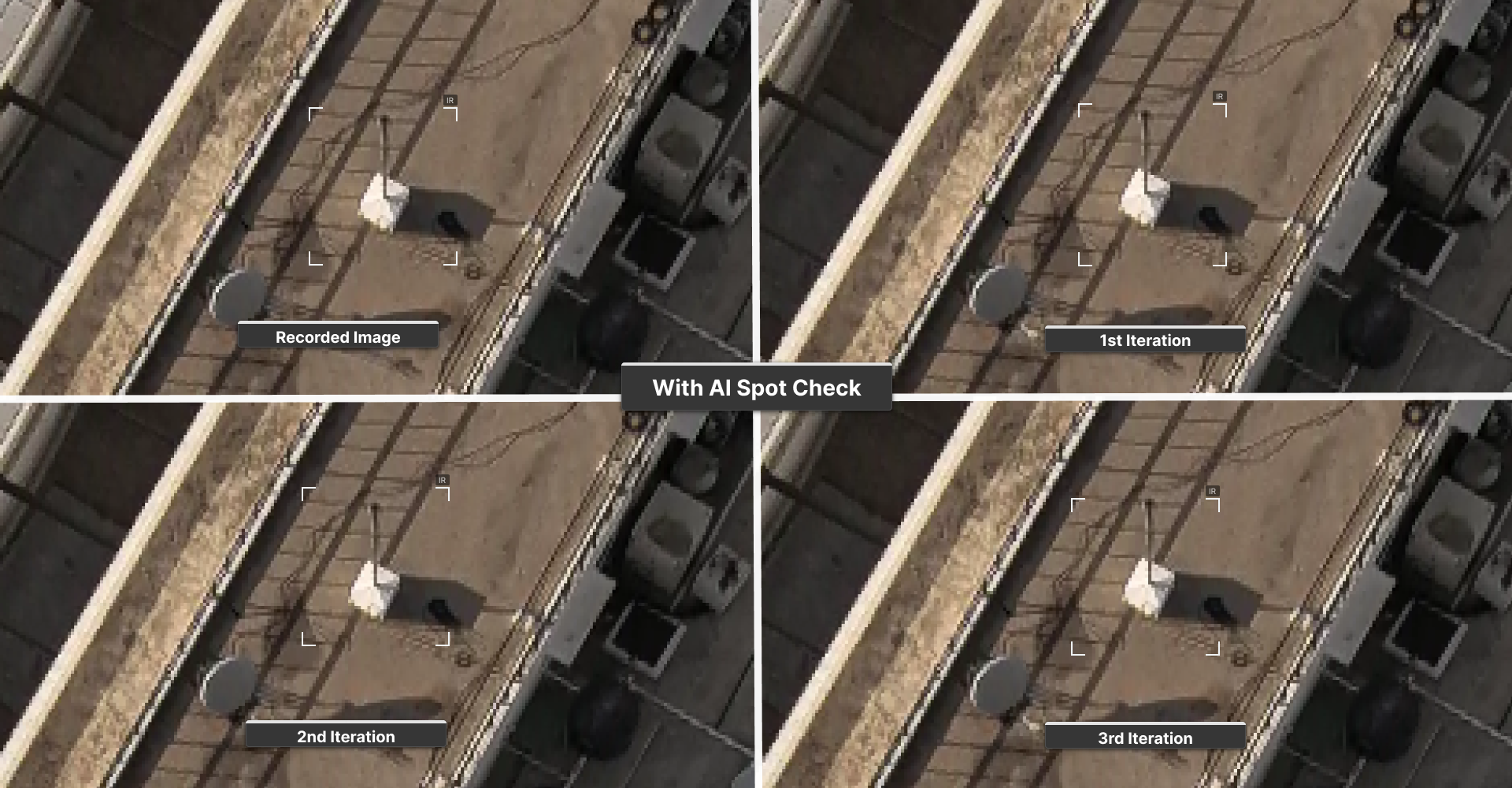 AI Spot Check compares the live feed with a stored reference image and fine-tunes the framing, keeping targets centered even when conditions change.