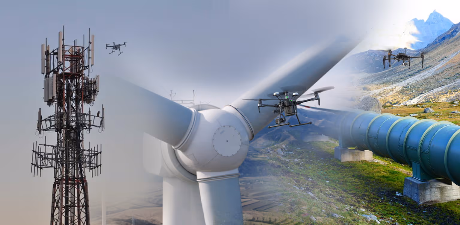 Las torres de telefonía móvil, las turbinas eólicas, las líneas eléctricas y casi todos los activos de infraestructura que se puedan imaginar requieren inspecciones periódicas y que requieren mucho tiempo. Estas inspecciones, que suelen ser realizadas exclusivamente por personas, son caras, suelen estar llenas de errores y proporcionan análisis e información limitados sobre el activo.