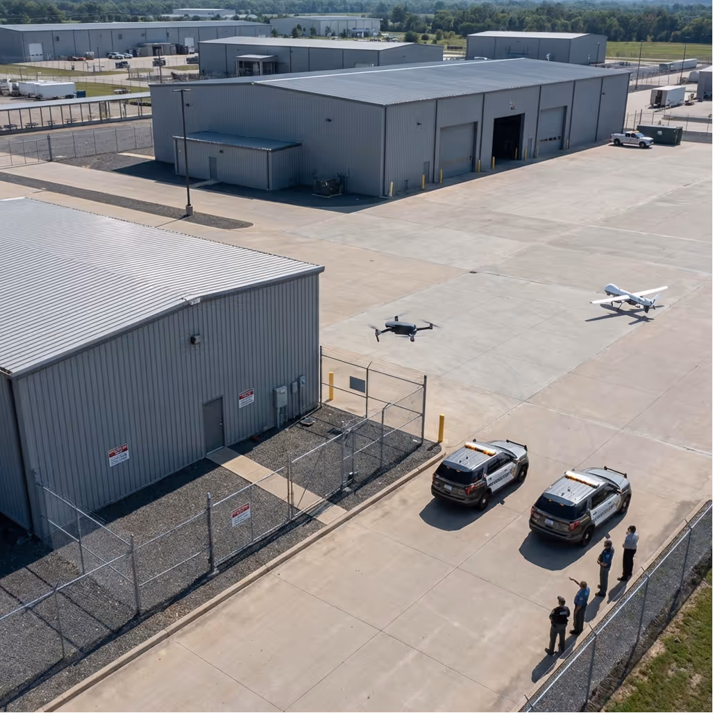 Implemente muelles automatizados para drones que activen alarmas perimetrales o alertas de drones de contrabando, proporcionando información aérea a cualquier parte de la propiedad en cuestión de minutos y generando automáticamente documentación de calidad probatoria.