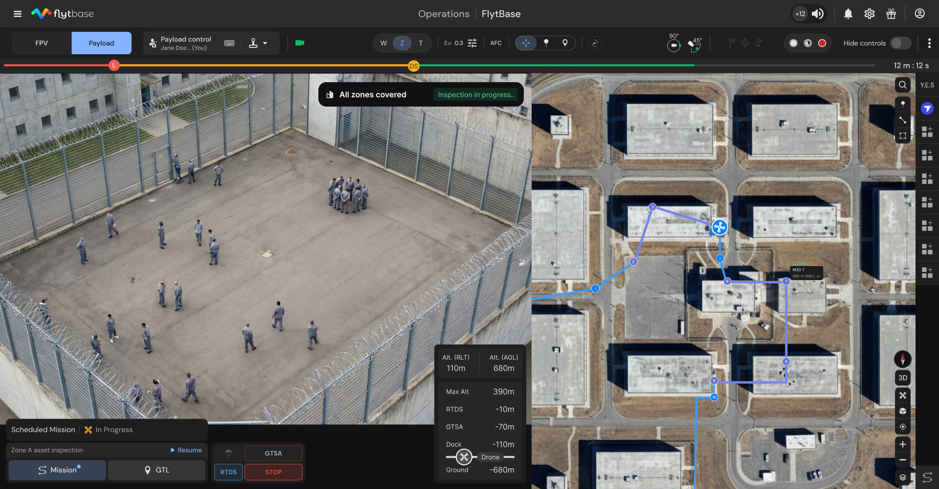 Automated missions execute 24/7 while FlytBase AI continuously analyzes video detecting contraband, unauthorized persons, and threatsātransforming drones from moving cameras into intelligent security systems.