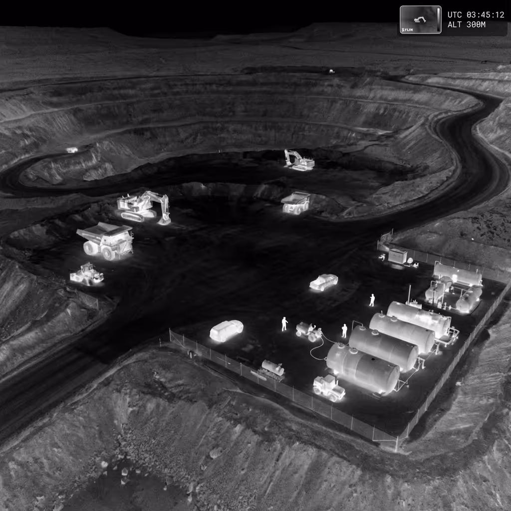 Nightly perimeter patrols with thermal detection identify intrusions and equipment theft attempts, protecting high-value assets without additional security personnel.