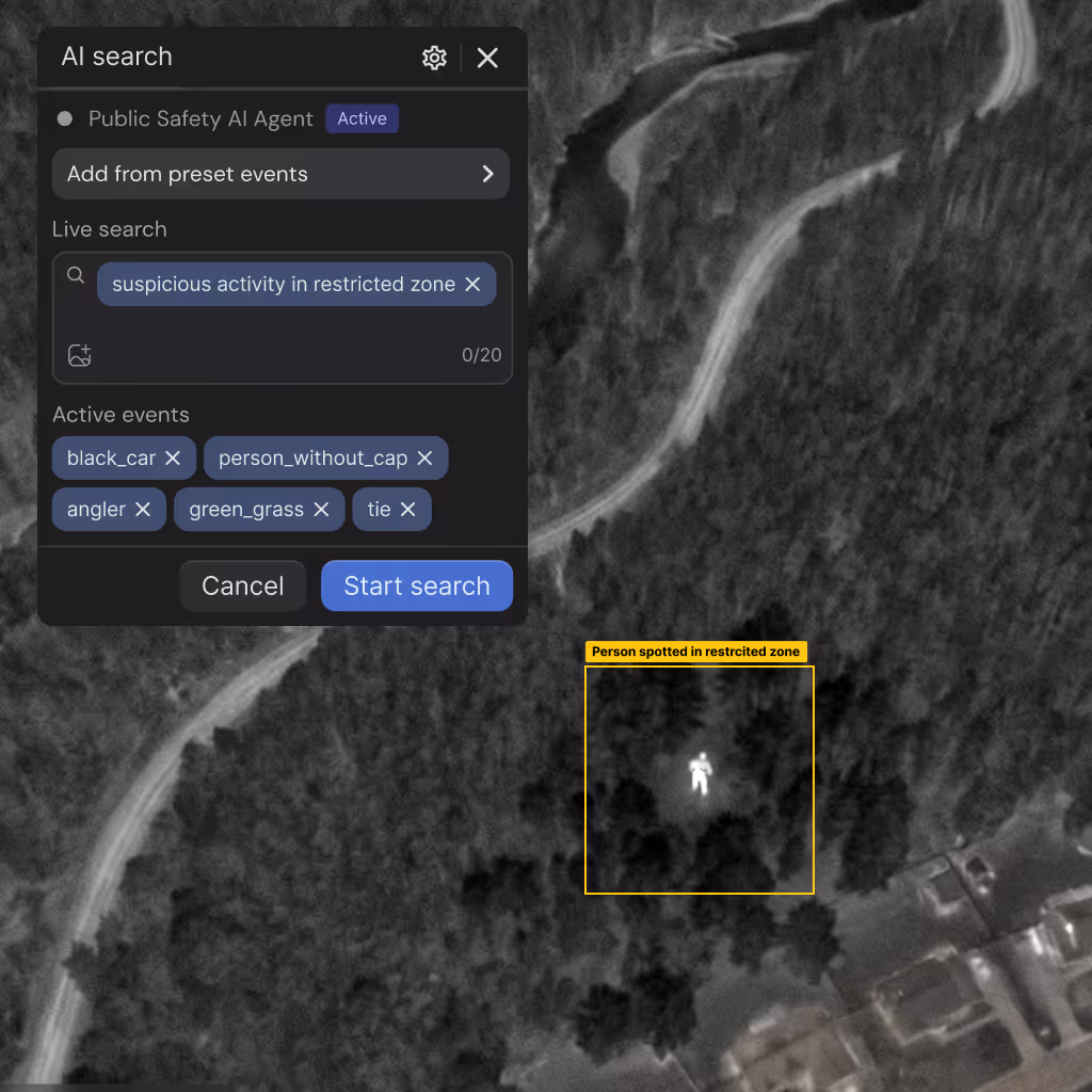 Identifies vehicles, people, and heat signatures with count type and license plate details automatically during operations.