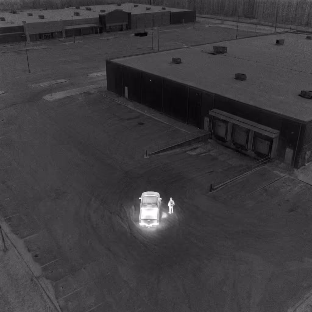 Highlight heat signatures indicating unauthorized personnel, equipment faults, or fire risk during nighttime operations without visible lighting.